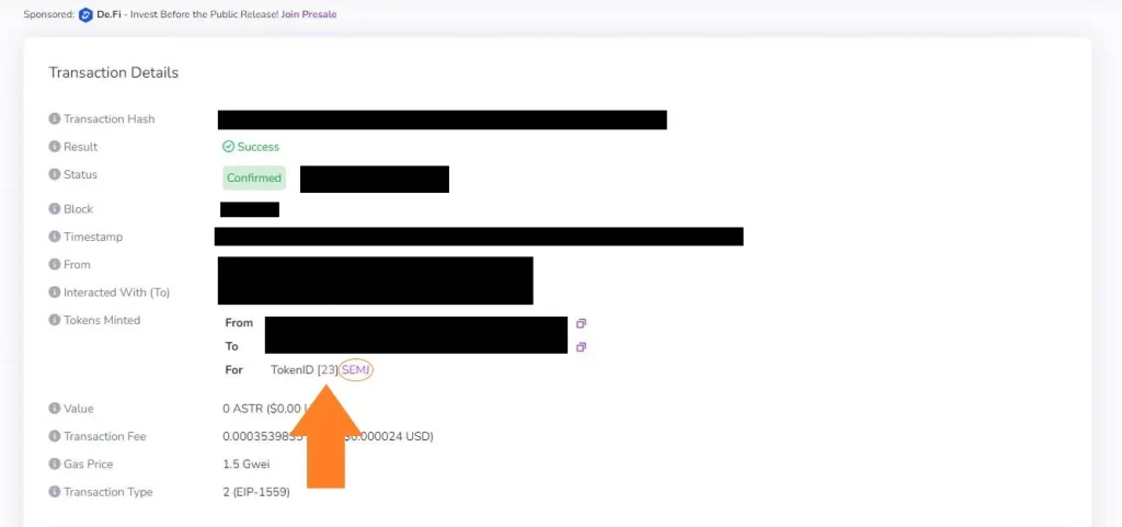 エクスプローラーで自らのウォレットを確認したい場合、ウォレットに$ASTRを送付し、ウォレット内に$ASTRを保有している必要があります。