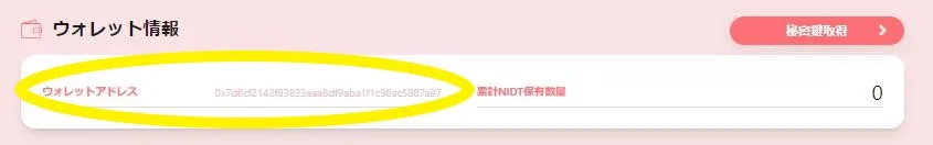 NIDT ポータルで受け取ったNFTはブロックチェーン上で実際に処理が行われ、マイページから確認できるウォレットアドレスに送付されていることが確認できます。