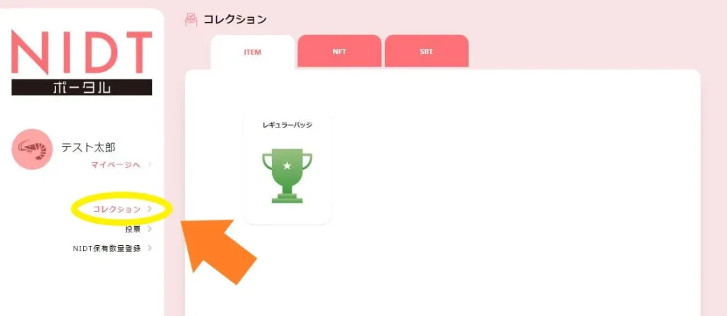 NIDT ポータルにて以下に説明する手順を実行して頂ければ、それぞれのNFTを受け取ることができるようになります。