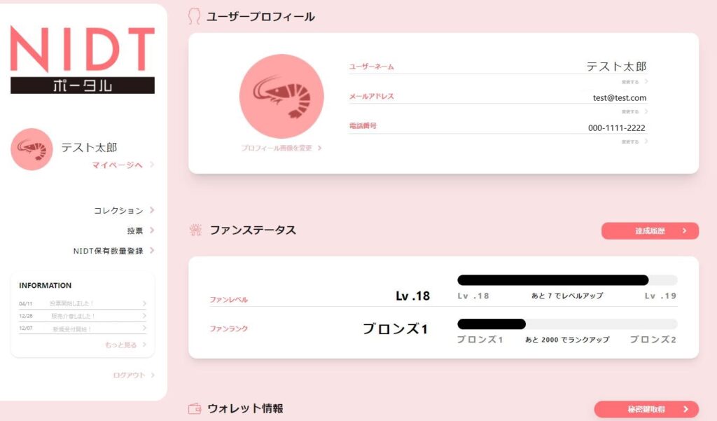 ❸NFTウォレットとNIDT保有トークン数