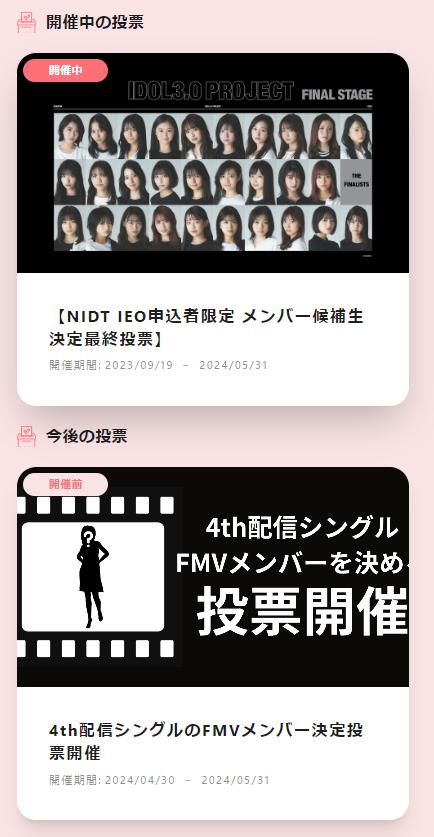 アイドル運営に関する投票を実施する機能です。みなさんに投票券が配布され、その投票券を使用して投票を行う形式になります。ここではその方法について解説していきます。